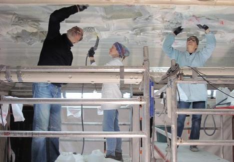 The intention of the restoration was to go back to the original (paint) layer of the ceiling. “The stucco has been painted over a number of times over the years, so the fine details had disappeared. We carefully removed the layers of paint, down to the stucco, making the details visible again.”