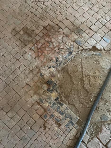 Le sol en mosaïque a été découvert par hasard lors de la restauration de l’actuelle salle d'archives. Le plancher en bois existant a dû être enlevé pour en vérifier la stabilité, pour ensuite être isolé. En effet, la ville restaure l'abbaye de manière économe en énergie et durable. C'est lors de cette étape que les ouvriers sont tombés sur un lit de sable sous lequel se trouvait le fameux sol en mosaïque.