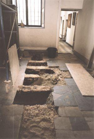 During excavation work, an ‘underfloor heating system’ or ‘hypocaustum’ modelled after the Romans, was discovered including the still preserved tile floor!