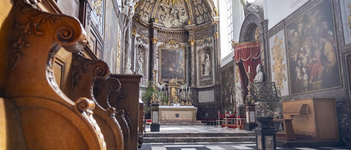 - The eight large canvases by the artist Pieter Jozef Verhaegen depict scenes from the lives of Norbertus and Jesus.